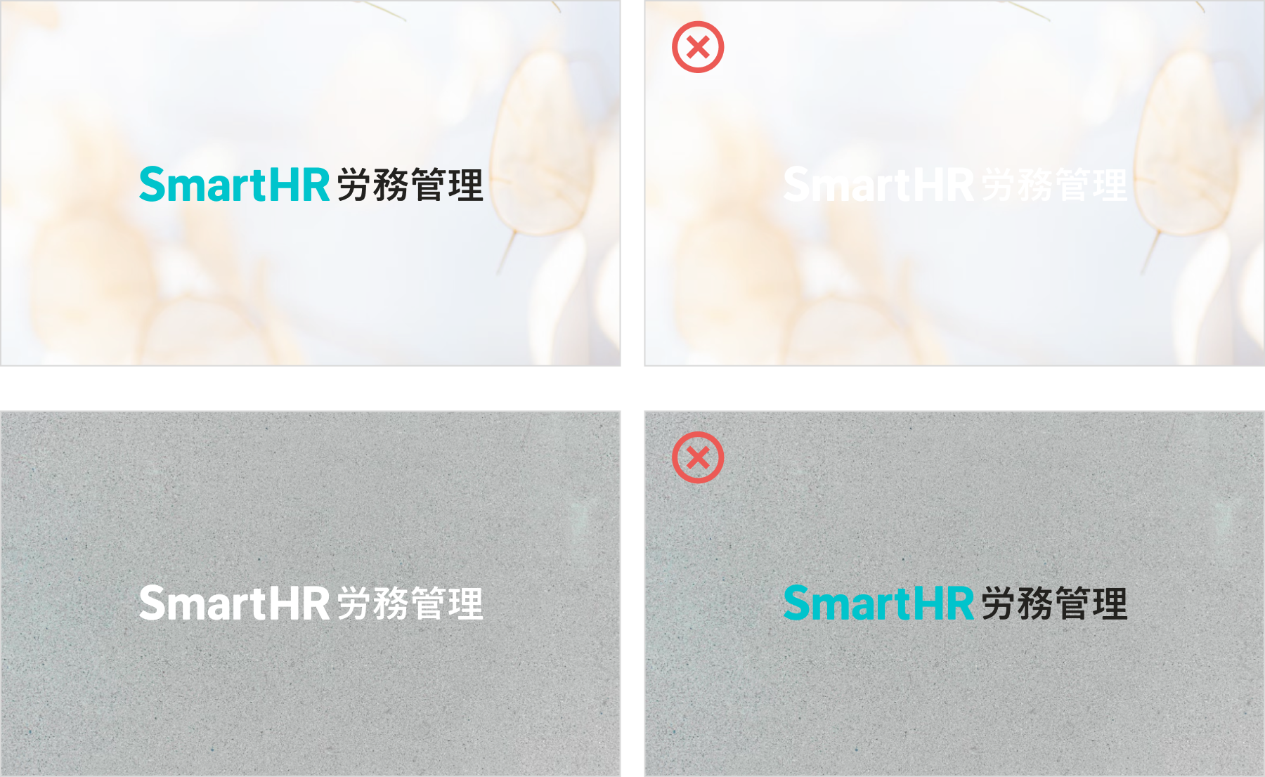 SmartHRロゴの禁止事項に加えて、サービスカテゴリーロゴの適切な認知を担保するために以下の表現を避けて利用してください。